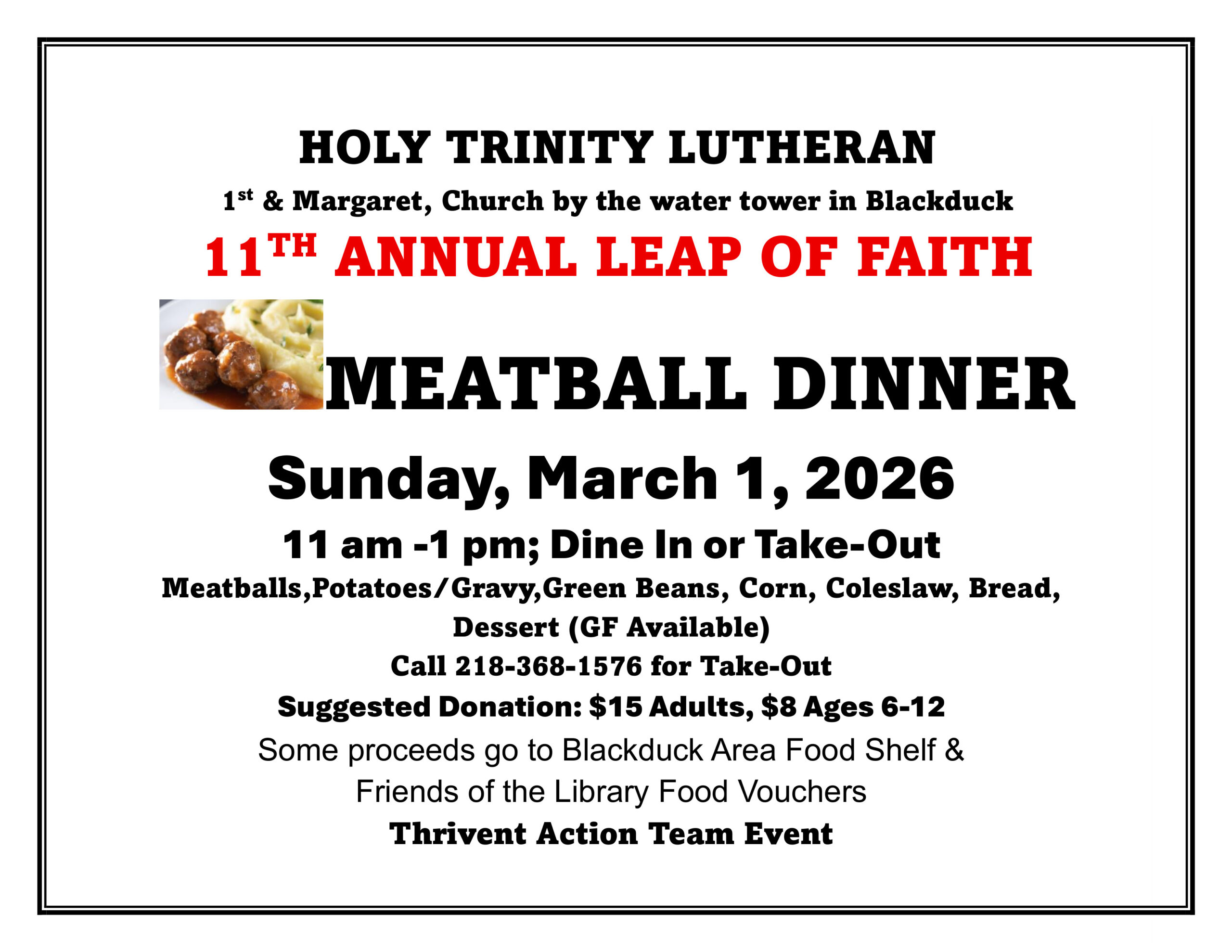 MEATBALL DINNER 2026 Posted by Josh on February 17, 2026 Tweet Pin It Posted in: Leave a Comment (0) ↓